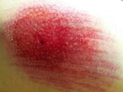 サイクリング中の落車で、右足大腿部外側に、打撲と擦り傷を作ってしまった。