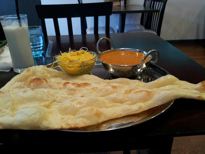 サラダのドレッシングはターメリックが効いた卵味、ナンもモチモチ感が素晴らしい