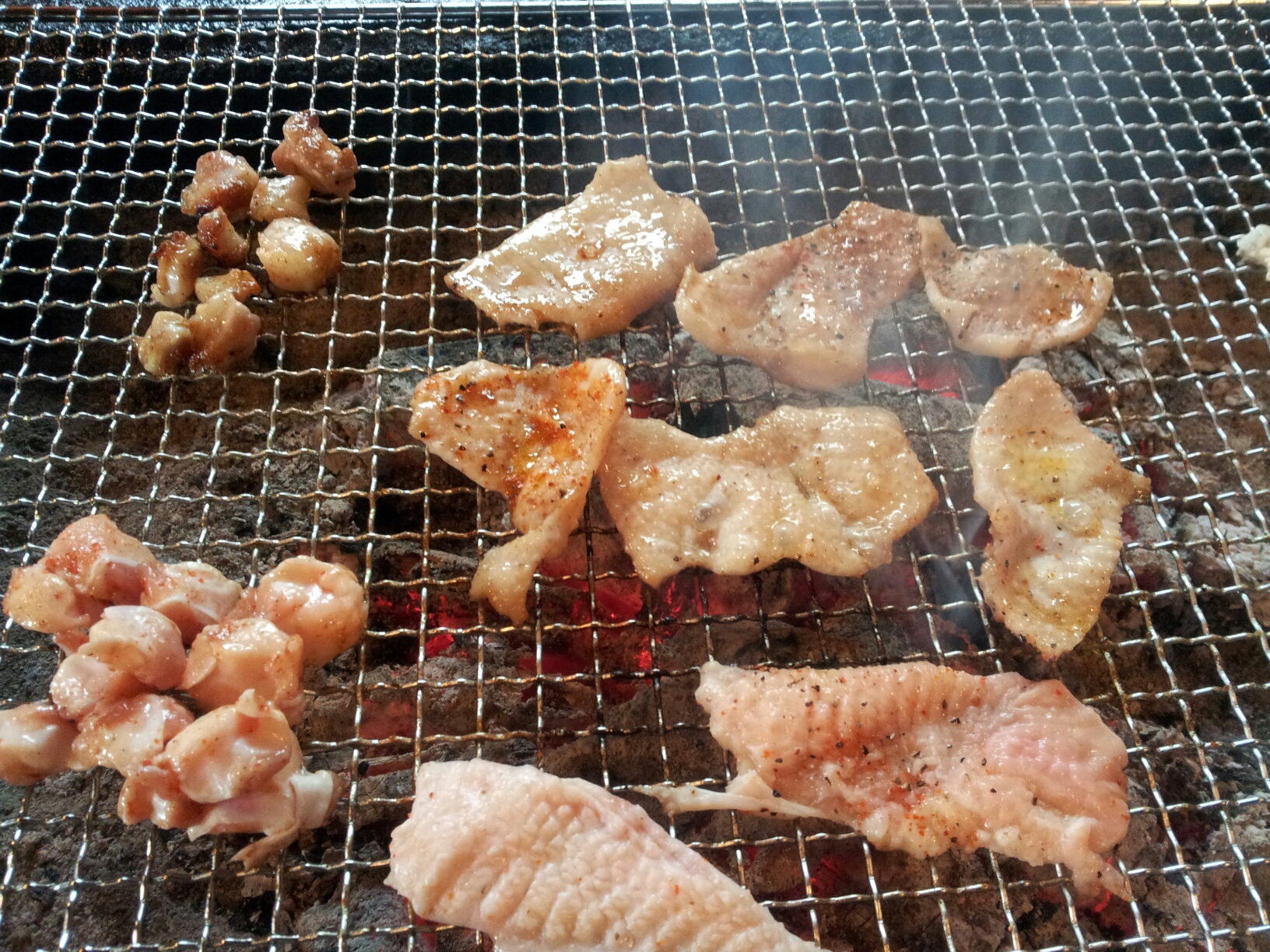 盛り合わせに、手羽先、鶏皮、大盛ご飯を注文