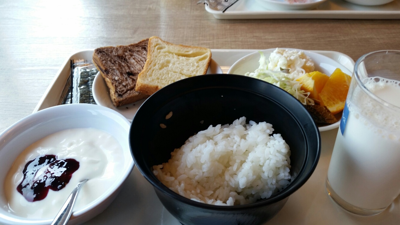 お腹が空いたので、ビジネスホテルの朝食バイキングに