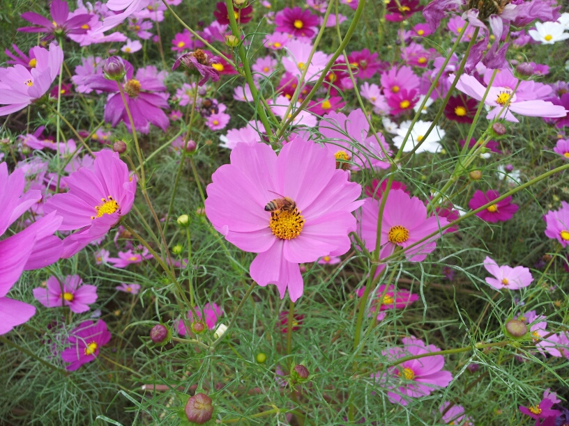 飯氏交差点を左折してしばらく走ると、見事なコスモス畑がありました。