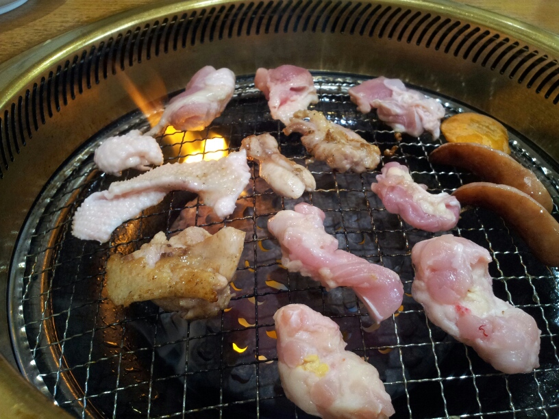 鳥もも、皮、などの盛り合わせに