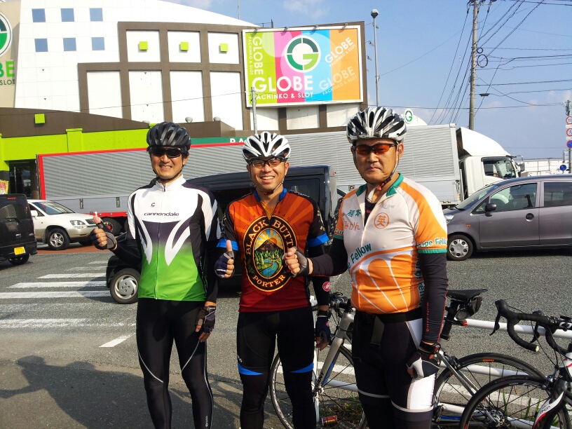 3号線を追い風にも助けられ、あっという間に、基山へ。ここで、鹿児島ツアー以来のヒデローさんと合流して、5台のトレインは、快調に久留米市内へ。