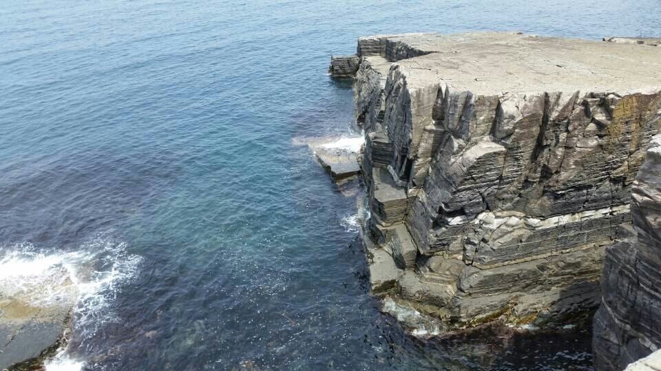 結構な勾配がいくつか続いた先に、本日の主役、須佐ホルンフェルスが目の前に現れました。遠くから見ると、あれっ、大したことないぞという感じですが………(~_~;)