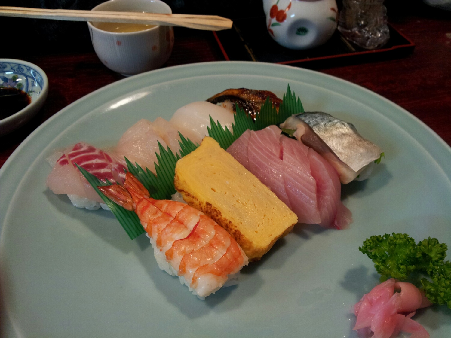 写真では、わかりにくいですが、シャリの上に普通サイズのネタが3~4枚載ってます。